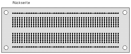 Der Plastikstreifen auf der Rückseite der Platte sollte nicht abgenommen werden, weil die Kontaktfedern in diesem Fall herausspringen. Wenn eine Feder überdehnt ist, wird man aber gezielt eine Kontaktreihe herausschneiden, zurechtbiegen, wieder einsetzen und festkleben können.