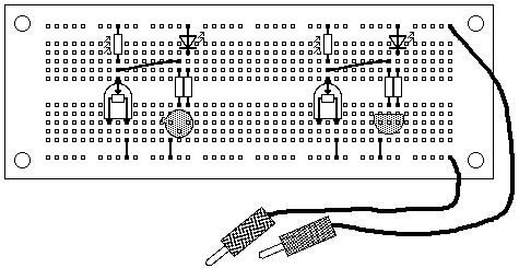Da der Aufbau der Experimentierplatte und die Form der Bauteile die Gestaltung einer Schaltung erheblich einschränken, wird sich die in einem Schaltplan vorgenommene Anordnung bei der technischen Realisierung nicht verwirklichen lassen. Diese Umsetzung, die ein genaues Hinsehen verlangt, stellt eine wichtige Übung dar. Bei ungeübten Schülern ist es jedoch sinnvoll, in einer Zwischenstufe die Platzierung der ihnen noch unbekannten Bauteile auf der Experimentierplatte graphisch vorzugeben. Auf diese Weise sollte jeder Schüler zunächst einige Standardschaltungen kennenlernen, bevor von ihm erwartet wird, daß er die Anordnung der Bauteile selbst festlegt.