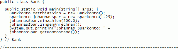Realisieren Sie der Reihe nach die Klassen Bankkonto, Sparkonto, Bank.