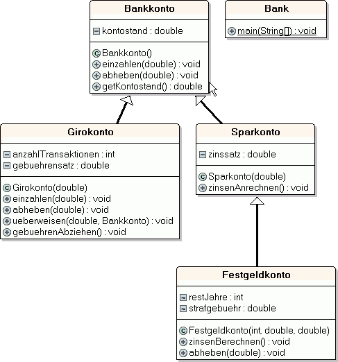 Realisieren Sie der Reihe nach die Klassen Bankkonto, Sparkonto, Bank.