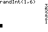 MATH PRB 5:randInt(1,6) wiederholt ENTER drücken |