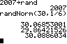 2007 STO MATH PRB 1:rand MATH PRB 1:randNorm(30,1/6) wiederholt ENTER drücken |