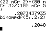 A:binomcdf(50,.2,20)  |