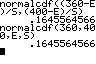 nach Formel DIST 2:normalcdf( (360-E)/S , (9^99-E)/S ) einfacher DIST 2:normalcdf( 360 , e ^ 99 , E , S )  |